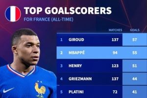 您的位置: 首页 > 资讯 > 足球资讯> 还差2球!法国队史射手榜:吉鲁57球居首,姆巴佩55球次席!